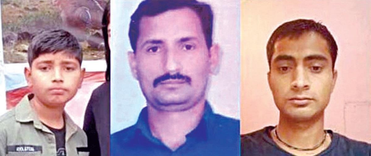 காஷ்மீரின் ஜம்மு பகுதி கதுவா மாவட்டம், பிலாவர் அருகேயுள்ள சுராக் கிராமத்தைச் சேர்ந்த தர்சன் சிங் (40) யோகேஷ் சிங் (32), வருண் சிங் (15) ஆகியோர் கடந்த 6-ம் தேதி உறவினர் ஒருவரின் திருமணத்துக்காக சென்றனர். டேகோடா கிராமத்தில் நடந்த திருமண விழாவில் பங்கேற்றுவிட்டு வனப்பகுதி வழியாக சொந்த ஊரான சுராக் கிராமத்துக்கு அவர்கள் திரும்பினர். ஆனால் 3 பேரும் வீடு திரும்பவில்லை. உறவினர்கள் போலீஸ் நிலையத்தில் புகார் அளித்தனர்.