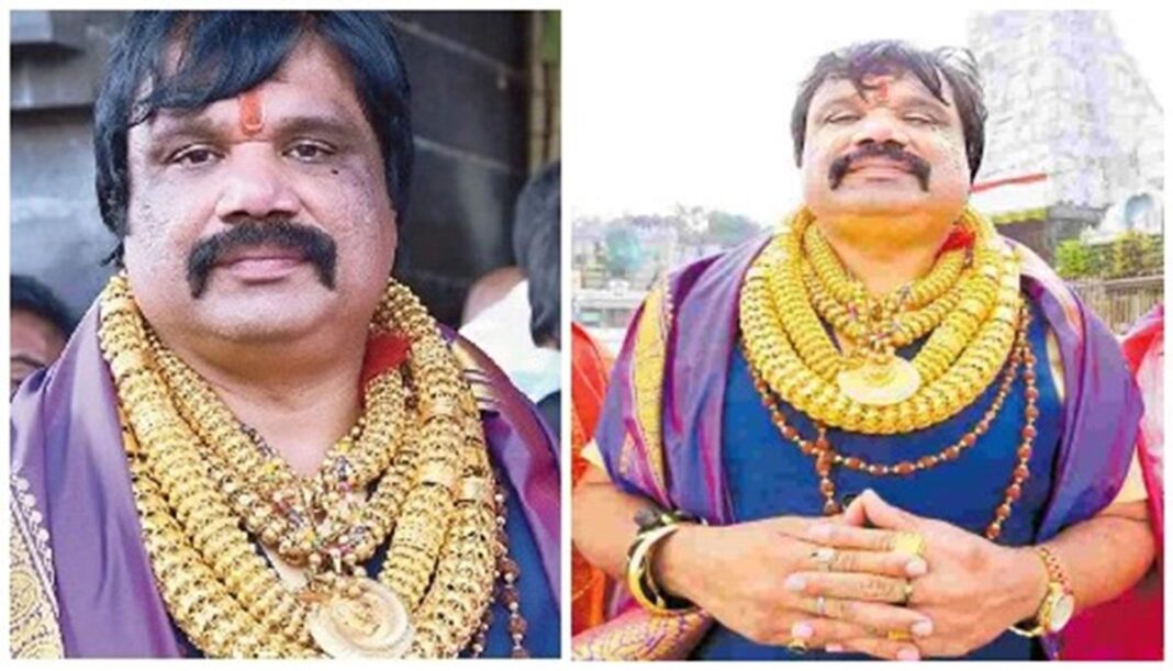 ஹைதராபாத்தைச் சேர்ந்த தெலங்கானா ஒலிம்பிக் சங்க துணைச் செயலாளர் விஜய குமார், 5 கிலோ எடையில் தங்க நகைகளை அணிந்து ஏழுமலையானை தரிசித்தார். இவரை பக்தர்கள் ஆச்சர்யத்துடன் பார்த்தனர்.
