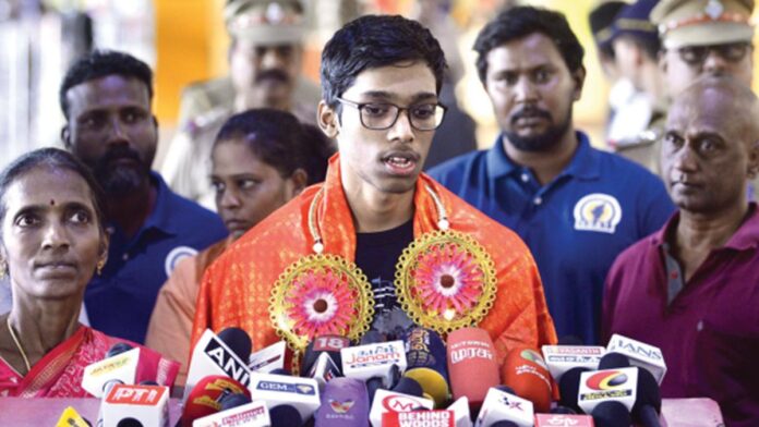 சாம்பியன் பட்டம் வென்ற பிரக்ஞானந்தா நெதர்லாந்தில் இருந்து விமானத்தில் துபாய் வழியாக நேற்று காலை சென்னை வந்தடைந்தார். அவருக்கு, சென்னை விமான நிலையத்தில் தமிழ்நாட்டு விளையாட்டு மேம்பாட்டு ஆணையம் மற்றும் தமிழ்நாடு செஸ் சங்கம் சார்பில் உற்சாக வரவேற்பு அளிக்கப்பட்டது. அப்போது பிரக்ஞானந்தா கூறியதாவது: