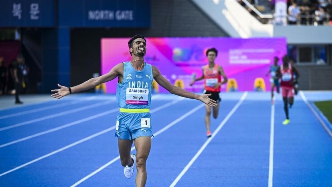 ஆசிய தடகள சாம்பியன்ஷிப் போட்டி தென் கொரியாவின் குமி நகரில் நடைபெற்று வருகிறது. இதில் ஆடவருக்கான 5 ஆயிரம் மீட்டர் ஓட்டத்தில் இந்தியாவின் குல்வீர் சிங் 13:24.77 விநாடிகளில் கடந்து புதிய சாதனையுடன் முதலிடம் பிடித்து தங்கப் பதக்கம் வென்றார்.