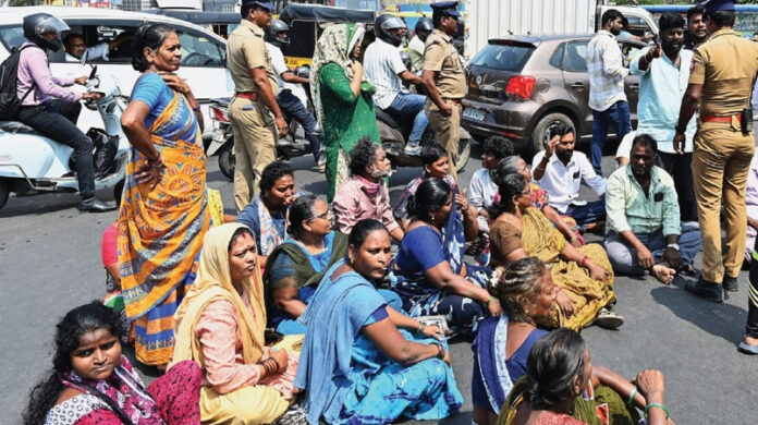 எல்லீஸ்புரம் குடிசை மாற்று வாரிய குடியிருப்புகளை இடிக்க முயற்சி: அண்ணா சாலையில் மறியல்