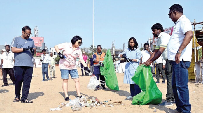ஆஸ்திரேலிய துணைத் தூதரகம், கிளீன்அப் ஆஸ்திரேலியா இயக்கம் மற்றும் அர்பேசர் சுமீத் இணைந்து சென்னை, பெசன்ட் நகர் எலியட்ஸ் கடற்கரையை தூய்மைப்படுத்தும் நிகழ்ச்சி நேற்று நடைபெற்றது. இதில் சுற்றுச்சூழல், காலநிலை மாற்றம் மற்றும் வனத்துறை செயலர் சுப்ரியா சாஹூ மற்றும் சென்னைக்கான ஆஸ்திரேலிய துணைத் தூதர் சிலாய் சாக்கி ஆகியோர் பங்கேற்று, கடற்கரை தூய்மைப் பணியை தொடங்கிவைத்தனர்.