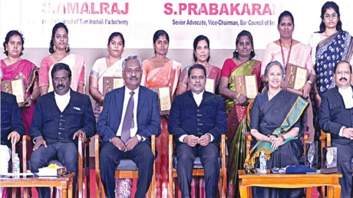 சர்வதேச மகளிர் தினத்தை முன்னிட்டு, தமிழ்நாடு மற்றும் புதுச்சேரி பார் கவுன்சில் சார்பில் பெண் நீதிபதிகளை கவுரவிக்கும் விழா மற்றும் 1,020 இளம் வழக்கறிஞர்களை பார் கவுன்சிலில் பதிவு செய்யும் நிகழ்வு, உயர் நீதிமன்ற கலையரங்கில் நேற்று முன்தினம் நடைபெற்றது.