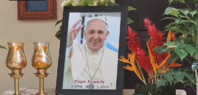 உலக கத்தோலிக்க திருச்சபையின் தலைவராக இருந்து வந்த போப் ஆண்டவர் பிரான்சிஸ் வயது மூப்பு காரணமாக நேற்று உயிரிழந்தார். உலகம் முழுவதும் உள்ள கிறிஸ்தவர்கள் போப் ஆண்டவருக்கு கண்ணீர் அஞ்சலி செலுத்தி வருகின்றனர். நாகர்கோவில் கோட்டார் ஆயர் இல்லத்தில் நேற்று ஆயர் நசரேன் சூசை மற்றும் பங்கு தந்தையர்கள் போப் ஆண்டவரின் புகைப்படத்திற்கு மலர்தூவி கண்ணீர் அஞ்சலி செலுத்தினார்.