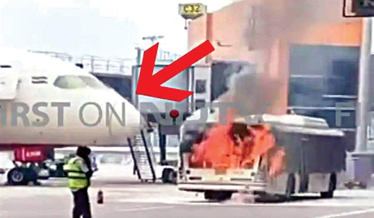 டெல்லியில் விமானம் அருகில் தீப்பற்றிய பேருந்து