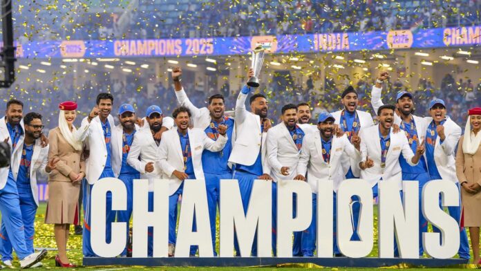 ஐசிசி சாம்பியன்ஸ் டிராபி கிரிக்கெட் தொடரில் நியூஸிலாந்து அணியை 4 விக்கெட்கள் வித்தியாசத்தில் வீழ்த்தி 12 வருடங்களுக்குப் பிறகு சாம்பியன் பட்டம் வென்றது இந்திய அணி.