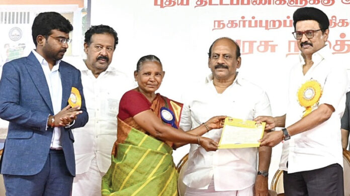 ஆட்சேபகரமற்ற புறம்போக்கு நிலங்களில் வசிப்போருக்கு பட்டா வழங்கும் திட்டத்தை முதல்வர் மு.க.ஸ்டாலின் செங்கல்பட்டில் நேற்று தொடங்கி வைத்தார். மேலும் பணிகள் முடிவுற்ற அரசுத் துறை கட்டிடங்களையும் திறந்து வைத்தார்.
