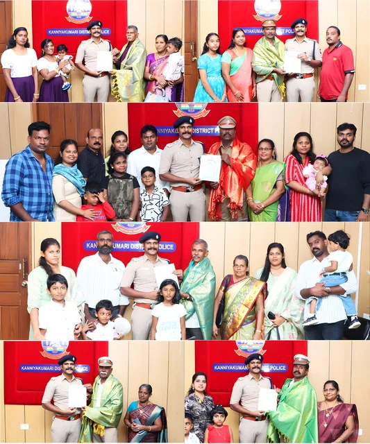 கன்னியாகுமரி மாவட்டத்தில் காவல்துறையில் பணிபுரிந்து இந்த மாத இறுதியில் ஓய்வில் செல்ல இருக்கும் 20 சிறப்பு உதவி ஆய்வாளர்கள் மற்றும் ஒரு அமைச்சுப் பணியாளர் ஆகியோருடனும் அவர்களது குடும்பத்துடனும் மாவட்ட எஸ்பி ஸ்டாலின் இன்று (மே 30) எஸ்பி அலுவலகத்தில் கலந்துரையாடினார். மேலும் சிறப்பாக பணியாற்றியதாக சால்வை அணிவித்து எஸ்பி பாராட்டினார்.