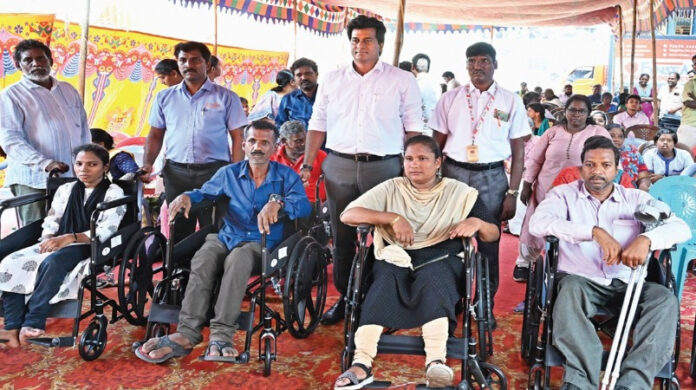 மாற்றுத் திறனாளிகளுக்கு மடக்கும் சக்கர நாற்காலிகள் (வீல் சேர்), குழந்தைகளுக்கான நடைபயிற்சி கருவிகள், வாக்கர்ஸ், டயாபர்ஸ், ஊன்றுகோல் உள்ளிட்டவற்றை ஃபின்சி லாஜிஸ்டிக்ஸ் நிறுவனத்தின் தலைமை செயல் அதிகாரி வி.ஆர்.வம்சி வழங்கினார்.
