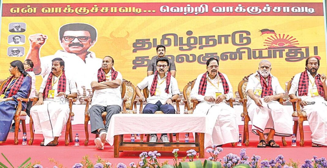 தமிழகம் இப்போது சமூக, அரசியல், பொருளாதார படையெடுப்பை சந்தித்து வருகிறது. பல்வேறு வழிகளில் நமக்கு தொல்லை கொடுக்கிறார்கள். இதை முறியடிக்கும் வல்லமை நமக்குதான் இருக்கிறது. பாஜகவின் பகல்கனவு திமுக இந்த மண்ணில் இருக்கும்வரை நிறைவேறாது.தற்போது வாக்காளர் பட்டியல் சிறப்புத் தீவிர திருத்தத்தை காண்பித்து மிரட்டுகிறார்கள். இதற்கெல்லாம் நாம் பணியமாட்டோம். பட்டியலினத்தவர், சிறுபான்மையினர் உள்ளிட்டவர்களின் பெயர்களை வாக்காளர் பட்டியலில் இருந்து நீக்கிவிட்டால், பாஜக.வும் அதன் கூட்டாளியான அதிமுகவும் வெற்றி பெற்றுவிடலாம் என்று தப்புக் கணக்கு போடுகிறார்கள். எனவே, மக்களின் வாக்குரிமையையே பறிக்க துணியும் எஸ்ஐஆர் செயல்பாட்டை விழிப்புடன் கண்காணிக்க வேண்டும். உண்மையான வாக்காளர் அனைவரும் பட்டியலில் இடம்பெறுவதை உறுதிசெய்ய வேண்டும். ஒவ்வொரு வாக்குச்சாவடியிலும் மக்களின் உரிமைகளைக் காக்க வேண்டியவர்கள் திமுகவினரும் – தோழமைக் கட்சியினரும்தான்.