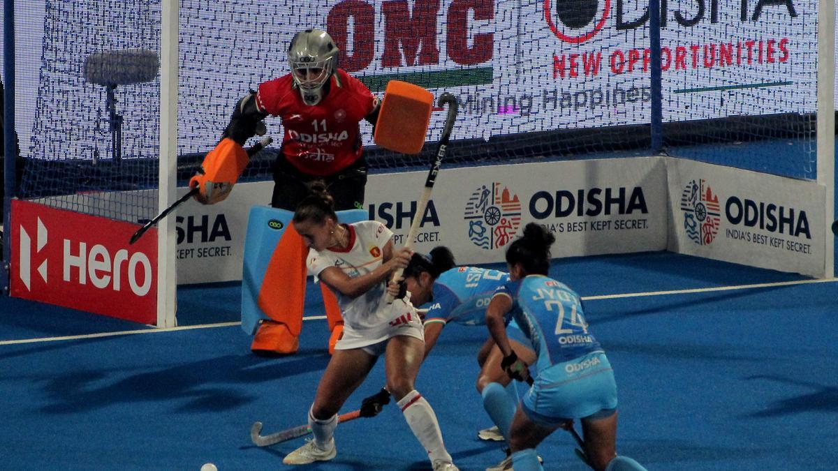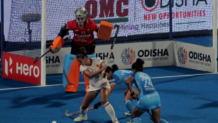மகளிருக்கான எஃப்ஐஹெச் புரோ ஹாக் லீக்கில் நேற்று புவனேஷ்வரில் நடைபெற்ற ஆட்டத்தில் இந்தியா – ஸ்பெயின் அணிகள் மோதின.