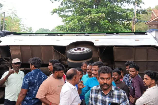 கலிங்கராஜபுரம் பகுதியை சேர்ந்த வினு என்பவர், மகளின் திருமண விருந்துக்காக நேற்று மாலை கேரள மாநிலம் பாலராமபுரம் பகுதிக்கு 4 வேன்களில் சென்றார். இதில் ஒரு வேனில் 24 பேர் பயணம் செய்தனர். கொல்லங்கோடு அருகே மணலி பகுதியில் சென்றபோது, ஒரு பைக்கில் மோதி நிலை தடுமாறி வேன் சாலையில் கவிழ்ந்தது. இதில் 18 பேர் காயமடைந்தனர். இருவர் நிலை கவலைக்கிடமாக உள்ளது. கொல்லங்கோடு போலீசார் விசாரணை நடத்தி வருகின்றனர்.