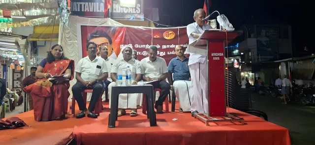 கொல்லங்கோடு நகர இளைஞரணி அமைப்பாளர் மெஜில் வரவேற்றார். மாநில பேச்சாளர் குழந்தை வேலு சிறப்பு உரையாற்றினார். கூட்டத்தில் மாவட்ட பொருளாளர் தத்தேயு பிரேம் குமார், அறங்காவலர் குழு உறுப்பினர் ஷைன் குமார், திமுக மாவட்ட பிரதி அப்துல் ரகுமான், ஆசிரியர் விபின் ஜோஸ், மாவட்ட பேச்சாளர் ஸ்டெலின் ஆகியோர் வாழ்த்தி பேசினார்கள்.