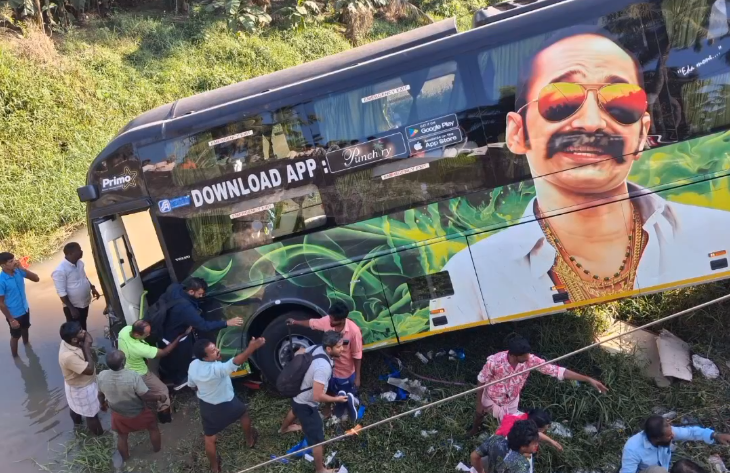 கன்னியாகுமரி மாவட்டம் வில்லுக்குறி அருகே தென்கரை, உடுப்பி ரெஸ்டாரன்ட் பகுதியில் இன்று காலை ஆம்னி பஸ் ஒன்று இருசக்கர வாகனத்தில் வந்த இருவர் மீது மோதியதில், இருவரும் சம்பவ இடத்திலேயே உயிரிழந்தனர். விபத்துக்குப் பிறகு பஸ் வள்ளி ஆற்றில் தொங்கிய நிலையில் காணப்பட்டது. மாவட்ட கலெக்டர் மற்றும் எஸ்.பி. சம்பவ இடத்தை ஆய்வு செய்தனர். தக்கலை போலீசார் இதுகுறித்து விசாரணை நடத்தி வருகின்றனர்.