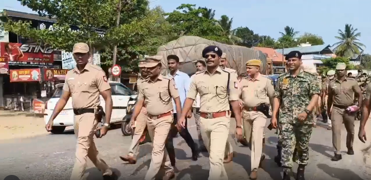 கேரள மாநிலத்தில் நாளை மறுநாள் நடைபெற உள்ள சட்டசபை தேர்தலை முன்னிட்டு, தமிழக-கேரள எல்லையான களியக்காவிளையில் இருந்து படந்தாலுமூடு வரை சுமார் 3 கிலோமீட்டர் தூரம் பாதுகாப்பு விழிப்புணர்வு ஏற்படுத்தும் வகையில் மத்திய ரிசர்வ் போலீஸ் படை மற்றும் போலீசார் பங்கேற்ற கொடி அணிவகுப்பு ஊர்வலம் இன்று (7-ம் தேதி) நடைபெற்றது. கன்னியாகுமாரி மாவட்ட எஸ்.பி. ஸ்டாலின் தலைமையில் மத்திய ரிசர்வ் போலீசார், மாநில போலீசார், ஊர்க்காவல் படையினர் என 250க்கும் மேற்பட்டோர் இந்த ஊர்வலத்தில் கலந்து கொண்டனர்.