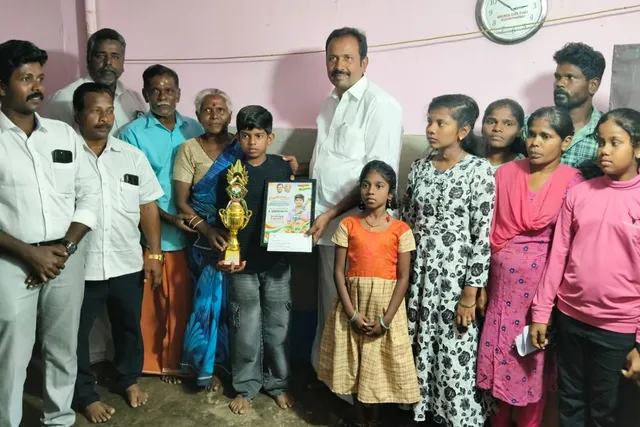 கிள்ளியூர், கோழிவிளை இலங்கை தமிழர்கள் குடியிருப்பு மறுவாழ்வு முகாமைச் சேர்ந்த 7-ம் வகுப்பு மாணவர் ஸ்ரீகாந்த் (12), கோவாவில் நடைபெற்ற 5-வது இளையோர் தேசிய ஹாக்கி போட்டியில் 2-வது இடம் பெற்று வெள்ளிப் பதக்கம் வென்றார். அவரது வீட்டிற்கு நேற்று நேரில் சென்ற தமிழக காங்கிரஸ் சட்டமன்ற குழு தலைவரும் கிள்ளியூர் சட்டமன்ற உறுப்பினருமான ராஜேஷ்குமார், மாணவர் ஸ்ரீகாந்த்திற்கு ரூ. 10,000 ரொக்கப் பரிசளித்து பாராட்டினார்.