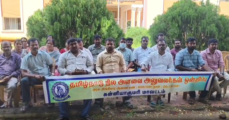 நாகர்கோவிலில் தமிழ்நாடு நில அளவை அலுவலர்கள் சங்கம் சார்பில் நேற்று கலெக்டர் அலுவலக வளாகத்தில் உள்ள அகஸ்தீஸ்வரம் தாலுகா அலுவலக வளாகத்தில் காத்திருப்பு போராட்டம் நடைபெற்றது. காலி பணியிடங்களை நிரப்ப வேண்டும், திட்ட பணிகளுக்கு சார் ஆய்வாளர் பணியிடத்தை நிரப்ப வேண்டும் உள்ளிட்ட பல்வேறு கோரிக்கைகளை வலியுறுத்தி இந்த போராட்டம் நடந்தது. மாவட்ட தலைவர் கிரிதர் தலைமையில் நடைபெற்ற இந்த போராட்டத்தில் நிர்வாகிகள் வைகுண்டராஜன், வினோத் மற்றும் சங்க நிர்வாகிகள், உறுப்பினர்கள் பங்கேற்றனர்.