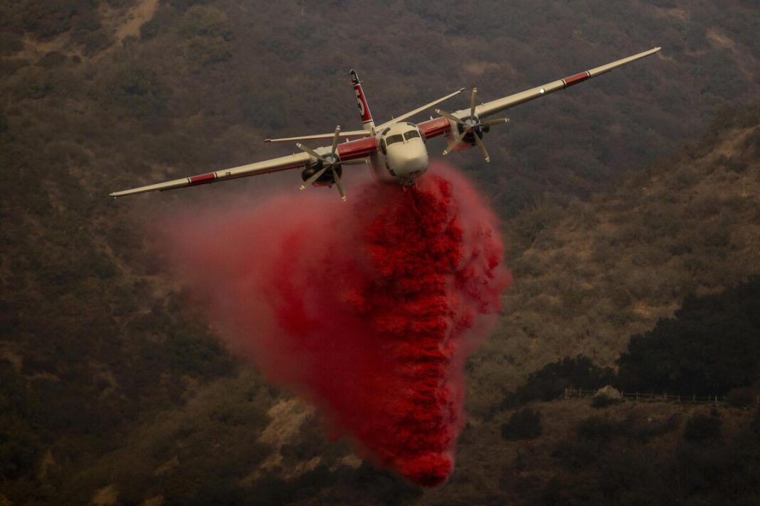 காற்றின் வேகம் அதிகமானதால் தீயை அணைக்க தீயணைப்பு வீரர்கள் போராடினர். பள்ளத்தாக்கில் வீரர்கள் தீயை அணைக்கப் போராடிக்கொண்டிருந்தபோது விமானம் மூலம் வானில் இருந்து இளஞ்சிவப்பு தீ தடுப்பு மருந்து வீசிப்பட்டது. இதனிடையே, லாஸ் ஏஞ்சல்ஸ் முழுவதும் உள்ள தீயணைப்பு குழுவினர், அல்டடேனா மற்றும் பசடேனா அருகே 22,660 ஏக்கர் பாலிசேட்ஸ் பகுதி தீயில் 11 சதவீதத்தையும், 14,000 ஏக்கர் ஈட்டன் பகுதி தீயில் 15 சதவீதத்தையும் கட்டுப்படுத்தியுள்ளதாக அதிகாரிகள் தெரிவித்தனர்.