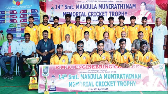 சென்னையை அடுத்த கவரப்பேட்டையில் உள்ள ஆர்எம்கே பொறியியல் கல்லூரியில் 16 அணிகள் கலந்து கொண்டுள்ள கல்லூரி களுக்கு இடையிலான மஞ்சுளா முனிரத்தினம் நினைவு 420 கிரிக்கெட் தொடர் நடைபெற்றது. இதன் இறுதிப் போட்டியில் நேற்று ஆர்எம்கே பொறியியல் கல்லூரி – லயோலா கல்லூரி அணிகள் மோதின.