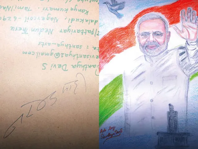 நாகர்கோவில்: பெண் வரைந்த ஓவியத்தில் கையெழுத்திட்ட மோடி