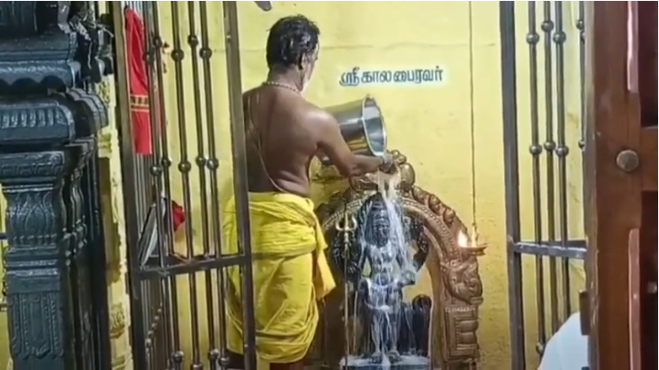 கன்னியாகுமரி மாவட்டம் நாகர்கோவில் கோதைகிராமம் காசிவிஸ்வநாதர் உடனுறை விசாலாட்சி அம்பாள் திருக்கோயிலில் தேய்பிறை அஷ்டமியையொட்டி காலபைரவருக்கு சிறப்பு அபிஷேகம் நேற்று (ஜனவரி 21) நடைபெற்றது. தயிர், பால், பன்னீர், களபம், சந்தனம் உள்ளிட்ட பல்வேறு வகை பொருட்களினால் அபிஷேகம் நடைபெற்றது. தொடர்ந்து தீபாராதனையும் நடந்தது. இதில் பக்தர்கள் கலந்துகொண்டு காலபைரவரை வழிபட்டனர்.