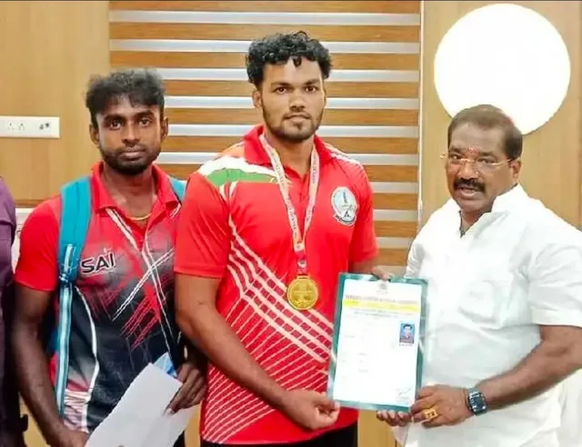 சேலத்தில் நடைபெற்ற மாநில அளவிலான மல்யுத்தப் போட்டியில் கன்னியாகுமரி மாவட்டம் தக்கலை பகுதியைச் சேர்ந்த ஹரிஷ் தங்கப் பதக்கம் வென்று சாதனை படைத்துள்ளார். இந்நிலையில், தான் வென்ற தங்கப் பதக்கம் மற்றும் சான்றிதழை நாகர்கோவில் மாநகராட்சி மேயரும், குமரி கிழக்கு மாவட்ட திமுக செயலாளருமான மகேஷிடம் நேற்று காண்பித்து வாழ்த்துப் பெற்றார்.