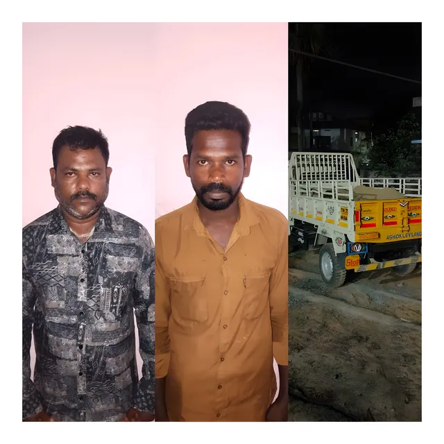 தொடர்ந்து அதே பகுதியை சேர்ந்த டிரைவர் சந்தோஷ்குமார் (35), ஜெபர்சன் (33) ஆகியோரை கைது செய்து நித்திரவிளை காவல் நிலையத்தில் ஒப்படைத்தனர். இது சம்பந்தமான புகாரின் பேரில் நித்திரவிளை போலீசார் சந்தோஷ்குமார், ஜெபர்சன் மற்றும் வாகன உரிமையாளர் அனீஸ் விமல் மற்றும் மணல் அள்ளும் தொழிலில் ஈடுபட்ட நித்திரவிளை பகுதியை சேர்ந்த தாமஸ், சாத்தான்கோடு பகுதி சேர்ந்த அருள், ஆலங்கோடு பகுதியை சேர்ந்த ஷாஜி ஆகியோர் மீது வழக்கு பதிவு செய்தனர்.