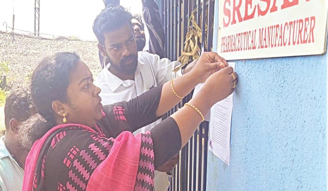 இந்​நிலை​யில், இந்த முக்​கிய விவ​காரம் குறித்து ஆலை நிர்​வாகத்​திடம் விளக்​கம் கோர, காஞ்​சிபுரம் மண்டல மருந்து கட்​டுப்​பாட்​டுத் துறை அதி​காரி மணிமேகலை நடவடிக்கை எடுத்​துள்​ளார். அவர் இந்த ஆலைக்​குச் சென்​ற​போது ஆலை பூட்​டப்​படிருந்​த​தால், இந்த நிறு​வனத்​தின் செயல்​பாடு​கள் குறித்து விளக்​கம் கோரும் நோட்​டீஸை ஆலை​யின் வாயி​லில் ஒட்​டி​னார்.