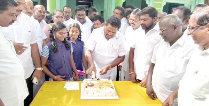 இதையடுத்து, தனது உருவம் பொறித்த கேக்கை வெட்டி பிறந்தநாளை கொண்டாடினார் அமைச்சர். இதேபோல், ஆறுமுகநேரி அரசு பெண்கள் மேல்நிலைப் பள்ளியில், திமுக கட்சிக் கொடியின் கலரில் தயாராகி இருந்த கேக்கை வெட்டி மகிழ்ந்தார் அமைச்சர். அப்போது, மாணவிகளுக்கு அமைச்சரும் அமைச்சருக்கு மாணவிகளும் பரஸ்பரம் கேக்கை ஊட்டிக் கொண்டதுடன், மாணவிகள் அமைச்சருக்கு பிறந்தநாள் வாழ்த்தும் பாடினர்.