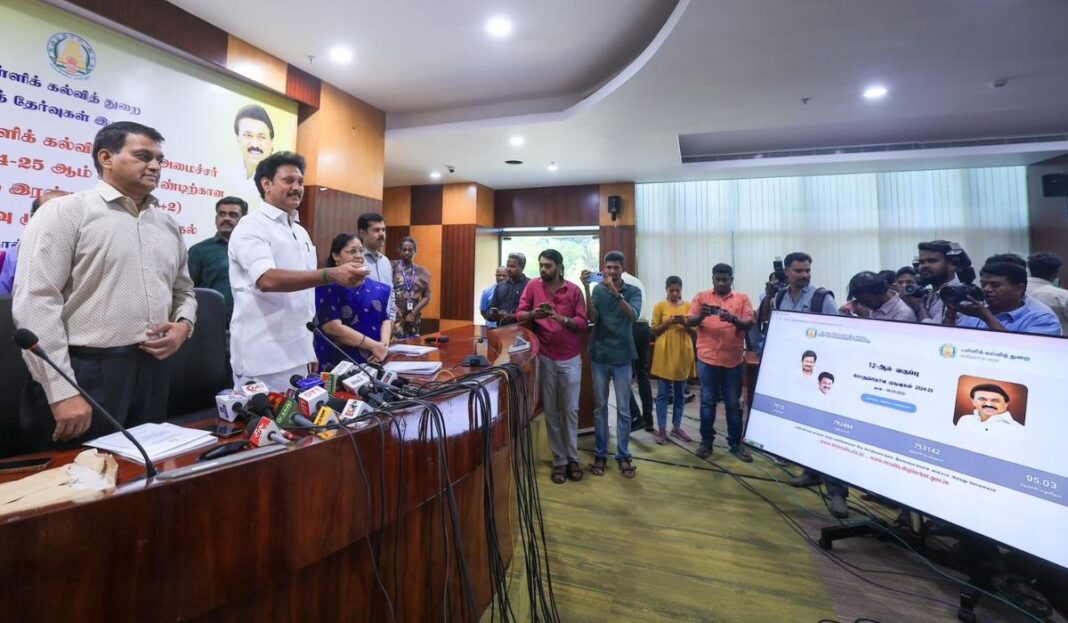 பிளஸ் 2 பொதுத்தேர்வு முடிவுகளை இன்று (மே 8) காலை 9 மணிக்கு பள்ளிக்கல்வி துறை அமைச்சர் அன்பில் மகேஸ் வெளியிட்டார். அதில், மொத்தம் 95.03% மாணவ, மாணவிகள் தேர்ச்சி பெற்றுள்ளனர். இதில் வழக்கம்போல் மாணவிகள் தேர்ச்சி விகிதம் அதிகம். அதன்படி மாணவிகள்: 96.70 %, மாணவர்கள்: 93.16 % தேர்ச்சி பெற்றுள்ளனர். கடந்த ஆண்டு மொத்த தேர்ச்சி விகிதம் 94.56% என்பது குறிப்பிடத்தக்கது.