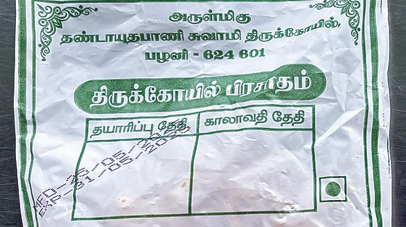 இதையடுத்து, தற்போது பாலித்தீன் கவருக்கு மாற்றாக எளிதில் மட்கும் ‘பயோ-பேக்கில்’ பிரசாதம் விற்பனையை கோயில் நிர்வாகம் தொடங்கி உள்ளது. முருகன் படத்துடன், அருள்மிகு தண்டாயுதபாணி சுவாமி கோயில் என அச்சிடப்பட்ட இந்த கவரில் பிரசாத தயாரிப்பு தேதி, காலாவதி தேதி, இந்திய உணவுப் பாதுகாப்பு மற்றும் தர நிர்ணய ஆணையம் (எஃப்எஸ்எஸ்ஐ) வழங்கியுள்ள உரிமம் எண், பயோ பேக் தயாரிப்பு நிறுவனத்தின் முகவரி மற்றும் க்யூஆர் கோடு ஆகியவை இடம் பெற்றுள்ளன. பயோ பேக்கில் பிரசாதம் வழங்குவது பக்தர்களிடம் வரவேற்பை பெற்றுள்ளது.