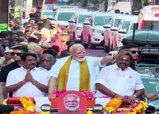 நாகர்கோவிலில் பிரதமர் நரேந்திர மோடியின் ரோடு ஷோ தொடங்கியுள்ளது. வேப்பமூடு சந்திப்பு பகுதியில் இருந்து வடசேரி எம்.ஜி.ஆர் சிலை வரை 1.5 கி.மீ. தூரத்திற்கு நடைபெறும் இந்த ரோடு ஷோவில் சாலையின் இருபுறமும் தொண்டர்களும், பொதுமக்களும் பிரதமரை வரவேற்று வருகின்றனர். தமிழக பாஜக தலைவர் நயினார் நாகேந்திரன், அதிமுக பொதுச்செயலாளர் எடப்பாடி பழனிசாமி, பாஜக முன்னாள் தலைவர்கள் அண்ணாமலை, பொன் ராதாகிருஷ்ணன் உள்ளிட்டோரும் பிரதமரின் பிரச்சார வாகனத்தில் உடன் செல்கின்றனர்.