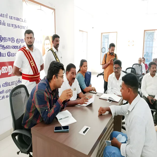கன்னியாகுமரி மாவட்டம் நாகர்கோவில் மாநகராட்சி மேயர் குமரி கிழக்கு மாவட்ட திமுக செயலாளர் ரெ. மகேஷ் தலைமையில், ஆணையர் நிஷாந்த் கிருஷ்ணா முன்னிலையில் மக்கள் குறைத்தீர்க்கும் முகாம் இன்று (மார்ச். 6) நடைபெற்றது. துணை மேயர் மற்றும் மாநகராட்சி அதிகாரிகளும் கலந்து கொண்டனர். முகாமில் மக்களுடைய கோரிக்கை மனுக்கள் வாங்கப்பட்டன. கோரிக்கைகளை தாமதமின்றி நிறைவேற்ற மேயர் உத்தரவிட்டார்.