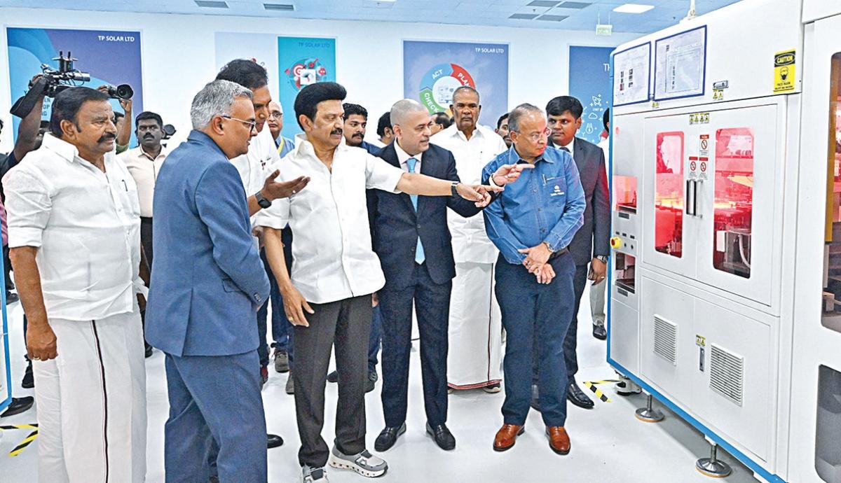 தமிழகத்தின் பல்வேறு மாவட்டங்களிலும் கள ஆய்வு மேற்கொண்டு வரும் முதல்வர் ஸ்டாலின், திருநெல்வேலி மாவட்டத்தில் 2 நாள் பயணம் மேற்கொண்டுள்ளார். இந்நிலையில், கங்கைகொண்டானில் உள்ள சிப்காட் வளாகத்தில் ரூ.3,800 கோடி முதலீட்டில் அமைக்கப்பட்டுள்ள டாடா குழுமத்தின் சோலார் நிறுவனத்தில் உற்பத்தியை முதல்வர் நேற்று தொடங்கி வைத்தார்.