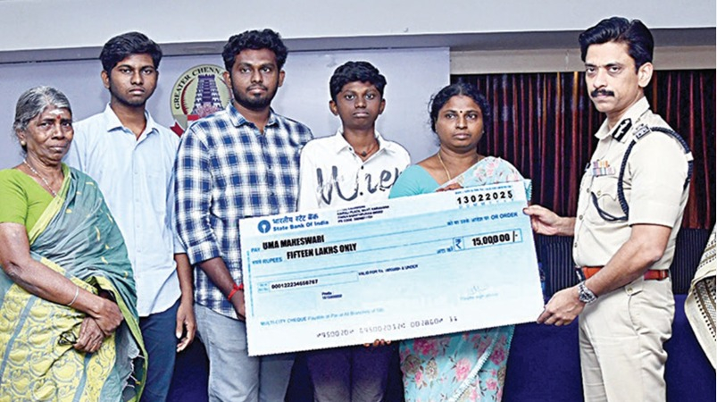 மேலும் சென்னை காவல்துறை சார்பில் ரூ.1 லட்சம் வழங்கப்பட்டது. இந்த ரூ.15 லட்சம் நிதியை கோபுவின் குடும்பத்தாரிடம் சென்னை காவல் ஆணையர் அருண் நேற்று ஒப்படைத்தார்.