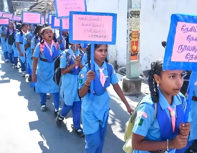 நாகர்கோவில் கோட்டார் டி.வி.டி. மேல்நிலைப் பள்ளியில் சாரண சாரணியர் நிகழ்ச்சி நேற்று நடைபெற்றது. செல்போனை தவிர்ப்போம், புத்தகம் வாசிப்பதை நேசிப்போம் என்ற தலைப்பில் அவர்கள் உறுதிமொழி ஏற்று சிந்தனை நாள் பேரணியில் கலந்து கொண்டனர். பேரணியில் கலந்து கொண்ட மாணவிகள் நாகர்கோவில் எஸ்.எல்.பி. மேல்நிலைப் பள்ளியில் நடைபெறும் புத்தகத் திருவிழாவிற்கு சென்று கலந்து கொண்டனர். இதில் ஏராளமான மாணவிகள் பங்கேற்றனர்.