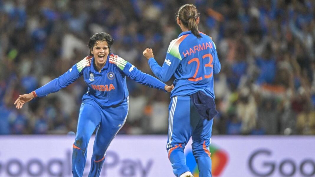 அரையிறுதி ஆட்டத்தில் அசத்திய ஜெமிமா ரோட்ரிக்ஸ் 24 ரன்களில் ஆட்டமிழக்க, கவுர் 20 ரன்களில் வெளியேறினார். ஆனால் தீப்தி ஷர்மா, ரிச்சா கோஷ் இருவரும் கடைசியில் விளாசித் தள்ளி ஸ்கோரை 298 ரன்களுக்குக் கொண்டு சென்றனர்.