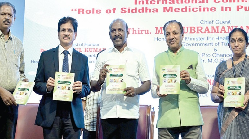 சென்னை கிண்டியில் உள்ள தமிழ்நாடு டாக்டர் எம்ஜிஆர் மருத்துவப் பல்கலைக்கழகத்தில் ‘பொது சுகாதாரத்தில் சித்த மருத்துவத்தின் பங்கு – 2025’ என்ற தலைப்பில் சர்வதேச சித்த மருத்துவ மாநாடு நேற்று நடைபெற்றது. இதில் பங்கேற்ற சுகாதாரத் துறை அமைச்சர் மா.சுப்பிரமணியன், 278 ஆராய்ச்சிக் கட்டுரை தொகுப்பு கொண்ட ‘அகத்தியம் 2025’ என்ற நூலை வெளியிட்டார்.