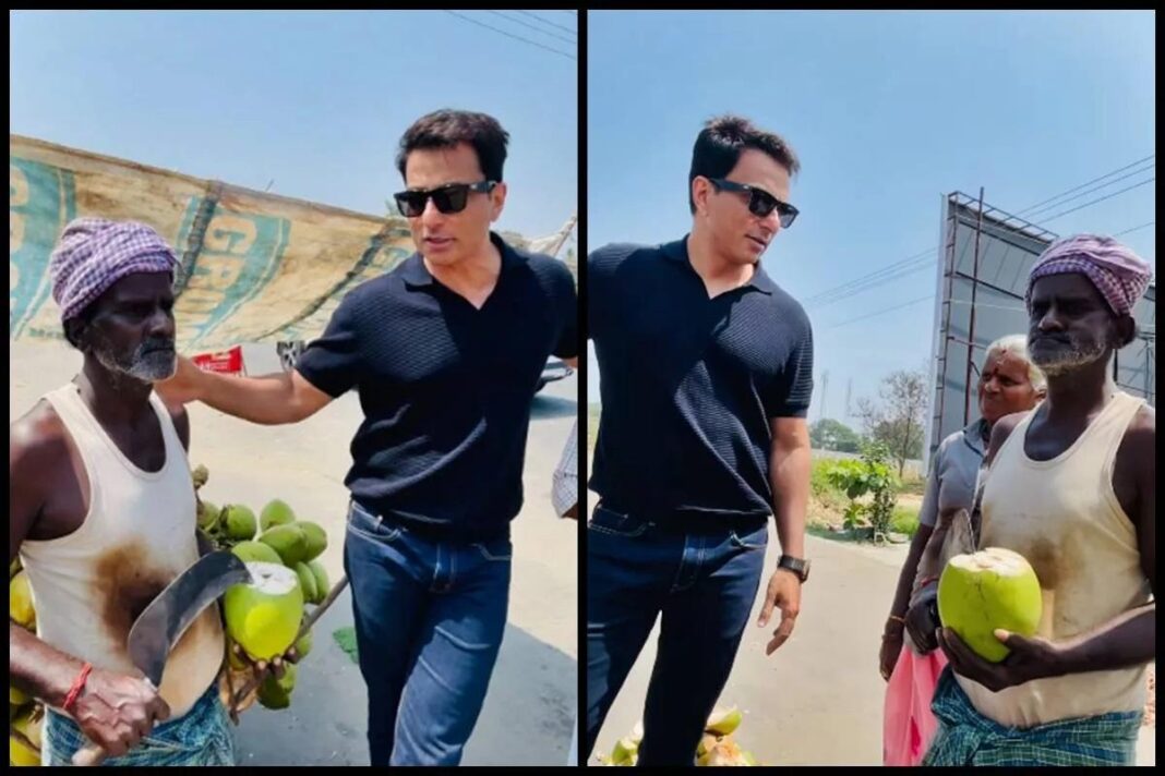 நடிகர் சோனு சூட், கரோனா காலத்தில் செய்த உதவிகள் மூலம் நாடு முழுவதும் பிரபலமானார். படப்பிடிப்பு ஒன்றுக்காகச் சென்னை வந்துள்ள அவர், சாலையோர இளநீர் வியாபாரியிடம் நலம் விசாரிக்கும் வீடியோவை வெளியிட்டுள்ளார். அதில், நீலகண்டன், ராணி, வாசுதேவன் என இளநீர் வியாபாரம் செய்பவர்களின் பெயர்களைச் சொல்லும் சோனு சூட், தமிழில் ‘நல்லாயிருக்கீங்களா?’ என்று விசாரிக்கிறார். பின்னர் சென்னை மட்டுமல்லாமல், இந்தியா முழுவதும் அமைப்புசாரா துறையைச் சேர்ந்த வணிகர்களையும் சிறு வணிகர்களையும் ஆதரிக்க வேண்டும் என்று கேட்டுக் கொண்டார். இந்த வீடியோ சமூக வலைதளங்களில் வேகமாகப் பரவி வருகிறது.