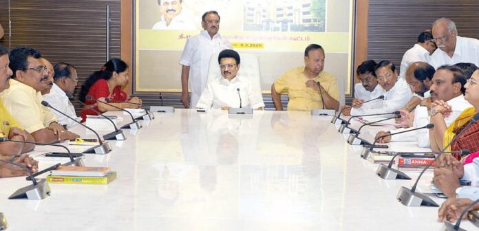 நாடாளுமன்ற தொகுதி மறுசீரமைப்புக்கு எதிராக நாம் நடத்திய ஒரேயொரு அனைத்துக் கட்சிக் கூட்டம் இந்தியா முழுவதும் கவனத்தை ஈர்த்துள்ளது. இந்த மறுசீரமைப்பால் பாதிக்கப்படவுள்ள ஆந்திரா, கர்நாடகா, கேரளா, தெலங்கானா, ஒடிசா, பஞ்சாப், மேற்கு வங்காளம் ஆகிய 7 மாநிலங்களில் உள்ள 29 கட்சிகளுக்கும், அந்த மாநில முதல்வர்களுக்கும் நான் கடிதம் அனுப்பியுள்ளேன். நமது கருத்தை ஒவ்வொரு மாநிலத்திற்கும் ஒரு அமைச்சர், ஒரு எம்.பி. கொண்ட குழு நேரில் சென்று விளக்க வேண்டும்.