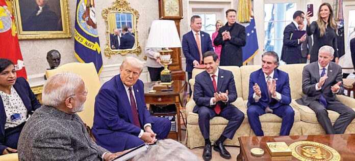 இதைத் தொடர்ந்து நேற்று அதிகாலை 3 மணி அளவில் அமெரிக்க அதிபர் டொனால்டு ட்ரம்பை பிரதமர் நரேந்திர மோடி சந்தித்துப் பேசினார். இரு தலைவர்களும் வர்த்தகம், பாதுகாப்பு, எரிசக்தி, செயற்கை நுண்ணறிவு, விண்வெளி தொழில்நுட்பம், கல்வி உட்பட பல்வேறு விவகாரங்கள் குறித்து விரிவான ஆலோசனை நடத்தினர். பின்னர் இருவரும் நிருபர்களுக்கு கூட்டாக பேட்டியளித்தனர். அப்போது அதிபர் டொனால்டு ட்ரம்ப் கூறியதாவது: