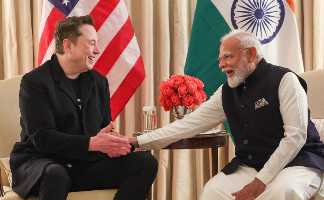 அமெரிக்காவின் முன்னணி கார் தயாரிப்பு நிறுவனமான டெஸ்லா இந்தியாவில் கால் பதிக்க ஆர்வமாக உள்ளது. இது தொடர்பாக பேச்சுவார்த்தை நடைபெற்று வருகிறது. ஆனால், அதிக இறக்குமதி வரி உள்ளிட்ட காரணங்களால் டெஸ்லா தயக்கம் காட்டி வருகிறது. இந்நிலையில், 40 ஆயிரம் டாலர்களுக்கு மேல் விலை கொண்ட அதிநவீன சொகுசு கார்களுக்கான அடிப்படை இறக்குமதி வரியை 110%-லிருந்து 70 சதவீதமாக இந்திய அரசு குறைத்துள்ளது. இந்த சூழலில், கடந்த வாரம் அமெரிக்கா சென்றிருந்த பிரதமர் மோடியை, டெஸ்லா நிறுவன தலைமைச் செயல் அதிகாரி எலான் மஸ்க் சந்தித்துப் பேசினார்.