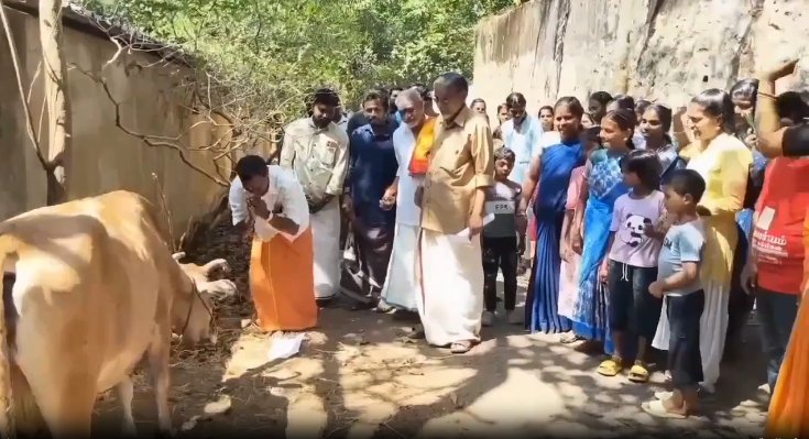 திக்குறிச்சி: கோயில் சாலையை சீரமைக்க பசு மாடுக்கு மனு