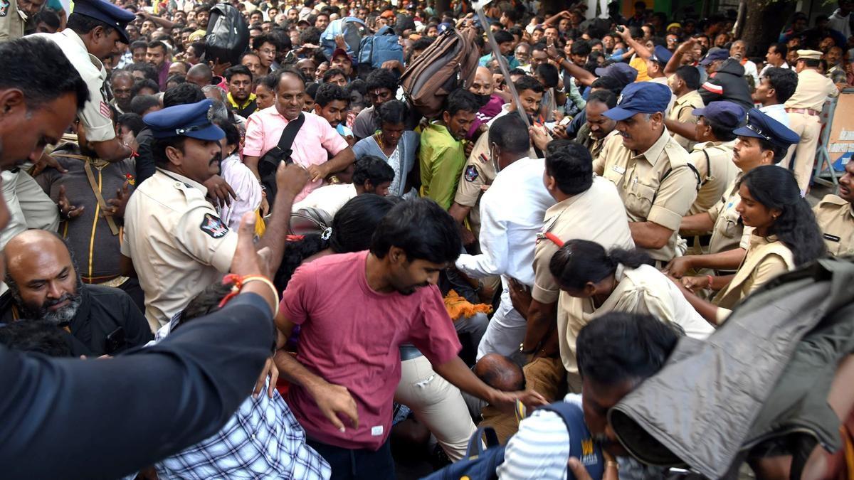வைகுண்ட ஏகாதசியை முன்னிட்டு திருமலையில் கடந்த 10-ம் தேதி முதல் 19-ம் தேதி வரை சொர்க்க வாசல் திறக்கப்பட்டு அதன் வழியே பக்தர்கள் அனுமதிக்கப்பட்டனர். இதற்காக கடந்த 9-ம்தேதி அதிகாலை 5 மணி முதல் இலவச டோக்கன் வழங்க திருப்பதியில் 8 இடங்களை திருமலை திருப்பதி தேவஸ்தானம் ஏற்பாடு செய்தது. ஆனால் கடந்த 8-ம் தேதி காலை முதலே பக்தர்கள் டோக்கன் வாங்க திருப்பதியில் குவிந்தனர். இரவு 9.30 மணிக்கு பக்தர்களுக்கு ஒரு வரிசை திறக்கப்பட்டவுடன் அவர்கள் முண்டியடித்துக் கொண்டு சென்றனர். அப்போது ஏற்பட்ட நெரிசலில் சிக்கி 6 பக்தர்கள் பரிதாபமாக உயிரிழந்தனர்.