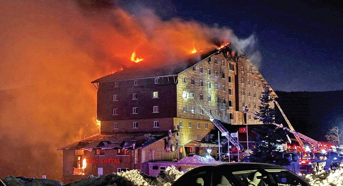 துருக்கியின் வடமேற்கு பகுதியில் உள்ள போலு மாகாணத்தில் கிப்ரிஸிக் நகரில் கர்தால்கயா ஸ்கை ஓட்டல் உள்ளது. 12 தளங்களைக் கொண்ட இதில் உள்ள உணவக பகுதியில் நேற்று அதிகாலையில் தீப்பிடித்துள்ளது. பின்னர் அந்தக் கட்டிடம் முழுவதும் தீ மளமளவென பரவியுள்ளது. இதுகுறித்து தகவல் அறிந்த தீயணைப்புப் படை வீரர்கள் சம்பவ இடத்துக்குச் சென்று தீயை கட்டுக்குள் கொண்டுவந்தனர்.
