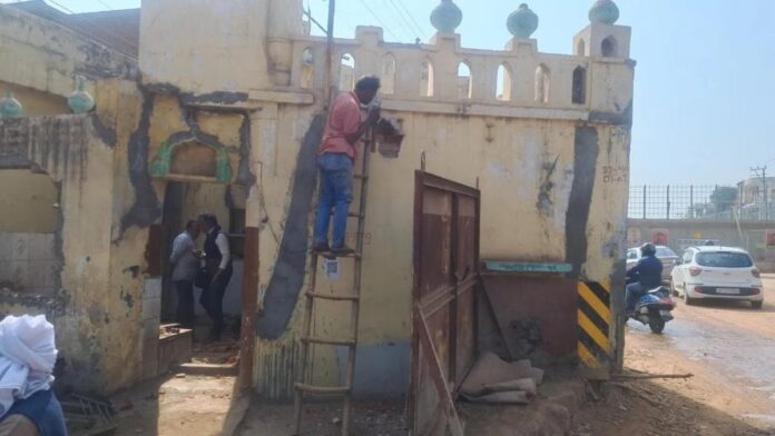 இந்த மசூதியில் நேற்று வெள்ளிக்கிழமை முதல் தொழுகை நிறுத்தப்பட்டது. மசூதிக்கான மின்சார இணைப்பு துண்டிக்கப்பட்டு இடிப்பு பணி துவங்கியது.