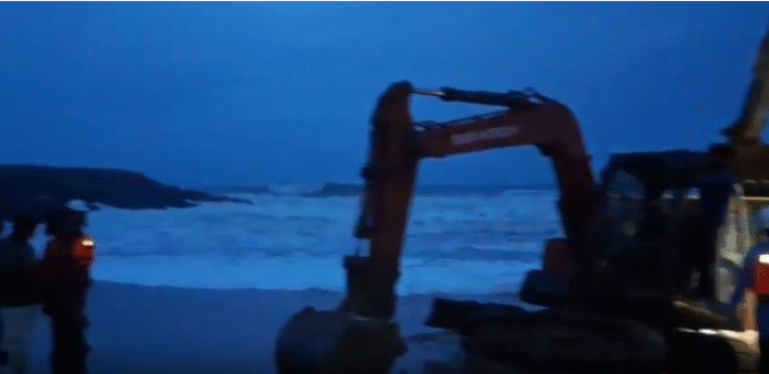 வாணியக்குடி:  கரை ஒதுங்கிய கண்டெய்னர் மீட்பு பணி தீவிரம்