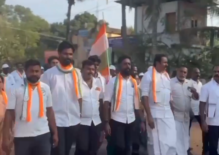 மகாத்மா காந்தி 100 நாள் வேலை உறுதி திட்டத்தின் பெயரை மாற்றிய மத்திய அரசை கண்டித்து தமிழ்நாடு சட்டமன்ற காங்கிரஸ் கட்சியின் தலைவர் ராஜேஷ் குமார் எம்எல்ஏ கிளியூர் சட்டமன்ற தொகுதியில் ஊராட்சிகள் தோறும் பாதயாத்திரை நடத்தி வருகிறார். இன்று 7 வது நாளாக நடைக்காவு மற்றும் வாவறை ஊராட்சிகளில் பாதயாத்திரை நடைபெற்றது. இந்த நிகழ்ச்சியில் மக்களை அவர் சந்தித்தார். இதில் மாவட்ட, வட்டார, ஊராட்சி காங்கிரஸ் நிர்வாகிகள் மற்றும் 100 நாள் வேலை உறுதி திட்ட பணியாளர்கள் கலந்து கொண்டனர்.
