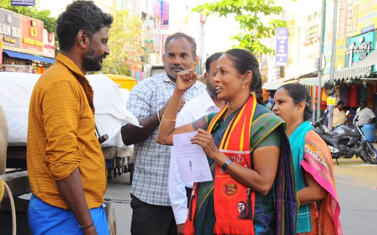 தனித்தன்மையுடன் பிரச்சாரம்: நாம் தமிழர் வேட்பாளர் சீதாலட்சுமி, விரல் விட்டு எண்ணக்கூடிய சிலருடன், தொடர்ந் பிரச்சாரத்தில் ஈடுபட்டு வருகிறார். அனுமதி இன்றி பிரச்சாரம் மேற்கொண்டதாக அவர் மீது வழக்குகள் பதிவு செய்யப்பட்டாலும், தனித்தன்மையுடன் அவர் தனது எளிமையான பிரச்சாரத்தை தொடர்ந்து வருகிறார். பேருந்து நிலையம், அரசு மருத்துவமனை என பொதுமக்கள் அதிகம் கூடும் இடங்களில் நாம் தமிழர் வேட்பாளர் மேற்கொள்ளும் பிரச்சாரத்திற்கு நல்ல வரவேற்பு கிடைத்து வருகிறது. வேட்புமனு தாக்கலுக்கு வந்த சுயேட்சை வேட்பாளர்கள், அதன்பின் பிரச்சாரக் களத்திற்கு வராமல் அமைதியாகி உள்ளனர்.
