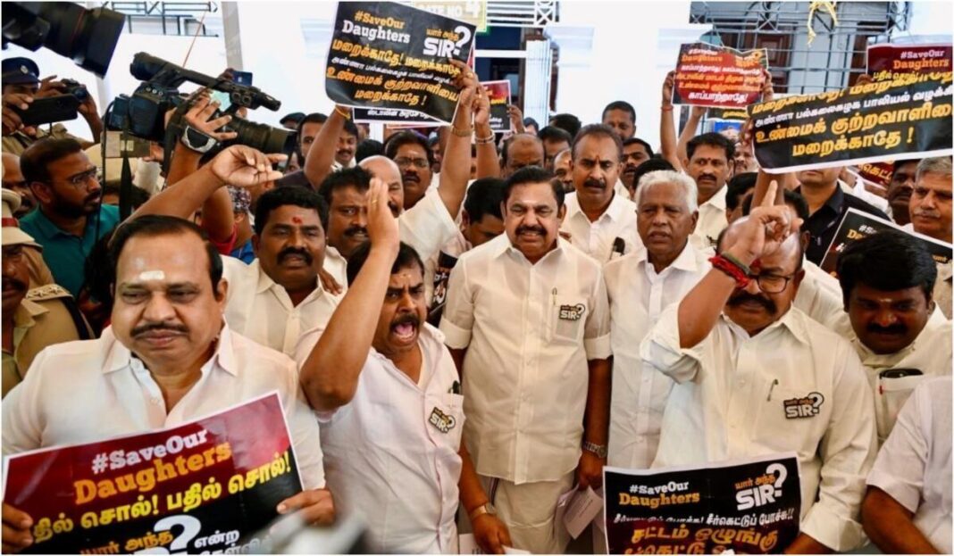 சட்டப்பேரவைக்கு நேற்று வந்த எதிர்க்கட்சி தலைவர் பழனிசாமி தலைமையிலான அதிமுக எம்எல்ஏக்கள், தங்களது சட்டைகளில் ‘யார் அந்த சார்?’ என்ற வாசகம் அடங்கிய பேட்ஜ்களை அணிந்திருந்தனர். அண்ணா பல்கலை. மாணவி பாலியல் வன்கொடுமைக்கு கண்டனம் தெரித்தும், பாதிக்கப்பட்ட மாணவிக்கு நீதி கேட்கும் விதமாக அரசின் கவனத்தை ஈர்ப்பதற்காக அதிமுகவினர் இந்த பேட்ஜ்களை அணிந்து வந்திருந்தனர். தொடர்ந்து சட்டப்பேரவையில் இருந்து வெளியேற்றப்பட்ட பின்னரும், யார் அந்த சார்? என்ற வாசகங்கள் அடங்கிய பதாகைகளை கைகளில் ஏந்தியவாறு, பாதிக்கப்பட்ட மாணவிக்கு நீதிகேட்டு கோஷங்களை எழுப்பியபடியே வெளியே வந்தனர்.